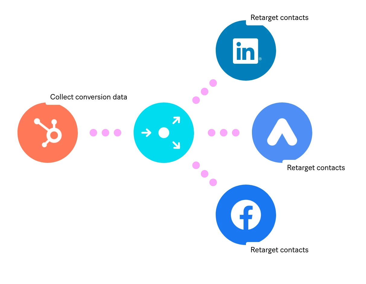 In this additional scenario, see how you can use the valuable audience data collected in HubSpot to retarget leads on platforms like LinkedIn, Apollo, and Facebook.